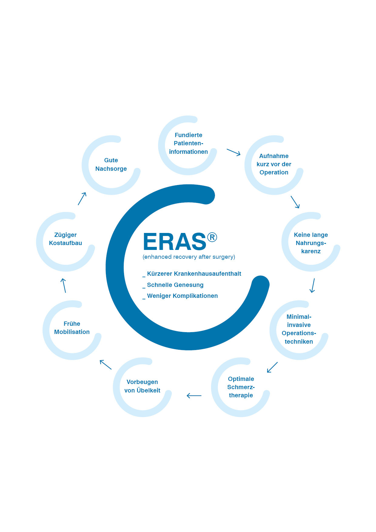 Eine Gewichtsabnahme vor einer geplanten Operation sollte vermieden werden. Im Rahmen der Vorgespräche für Ihre Operation wird die ERAS®-Nurse ein kurzes Ernährungsscreening mit Ihnen gemeinsam durchführen. Sollte es hier Auffälligkeiten geben, wird unser Ernährungsteam vor der Operation mit Ihnen Kontakt aufnehmen.